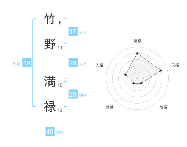 竹野 満禄さんを姓名の画数から五運を鑑定