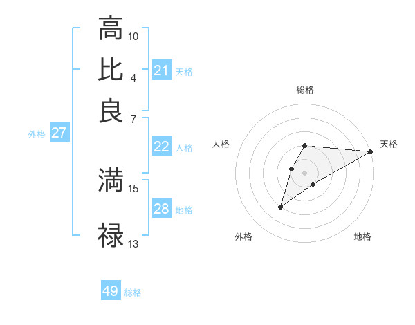 高比良 満禄さんの天格は21画の5点!
