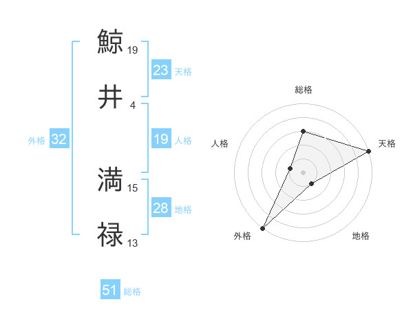 鯨井 満禄さんの総格は51画の3点!