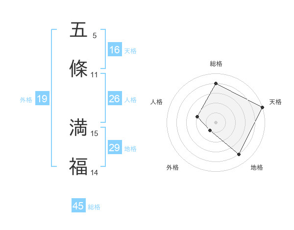 五條 満福さんの総格は45画の4点!