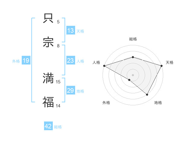 只宗 満福さんの天格は13画の5点!