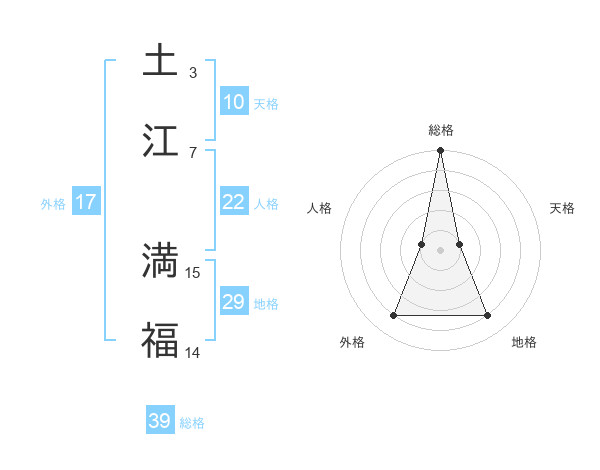 土江 満福さんの総格は39画の5点!