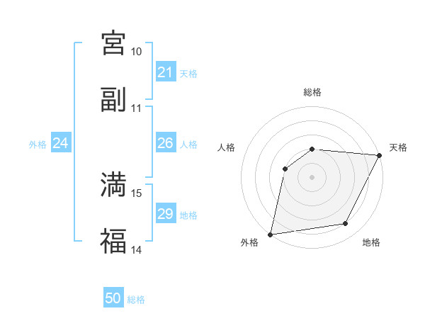 宮副 満福さんの総格は50画の2点!
