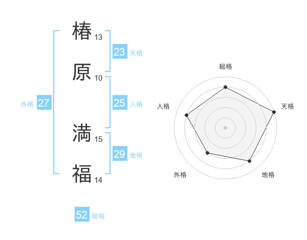 椿原 満福さんの天格は23画の5点!