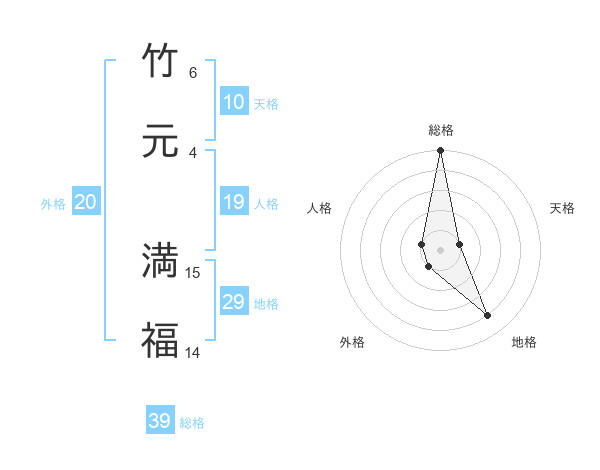 竹元 満福さんの総格は39画の5点!