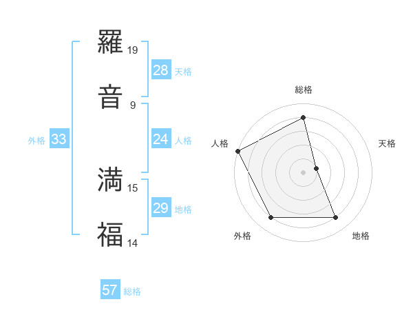 羅音 満福さんの外格は33画の4点!
