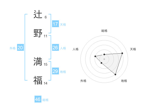 辻野 満福さんの総格は46画の1点!