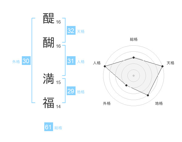醍醐 満福さんの天格は32画の5点!