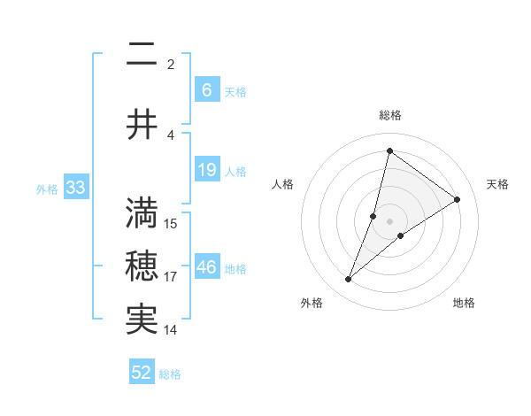二井 満穂実さんを姓名の画数から五運を鑑定
