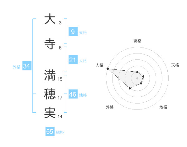 大寺 満穂実さんの総格は55画の1点!