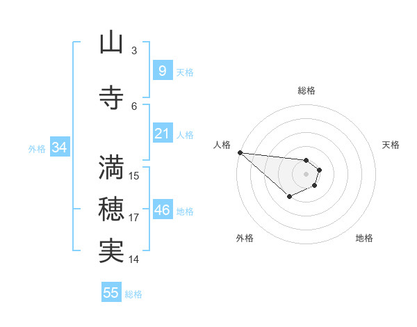 山寺 満穂実さんの総格は55画の1点!