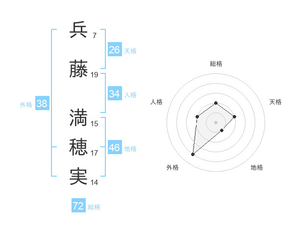 兵藤 満穂実さんを姓名の画数から五運を鑑定