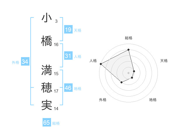 小橋 満穂実さんを姓名の画数から五運を鑑定