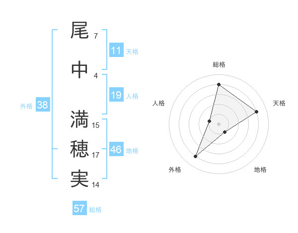 尾中 満穂実さんを姓名の画数から五運を鑑定