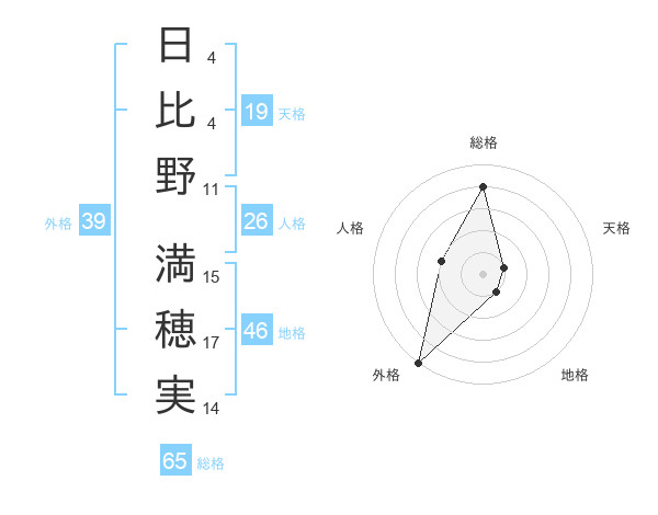 日比野 満穂実さんを姓名の画数から五運を鑑定