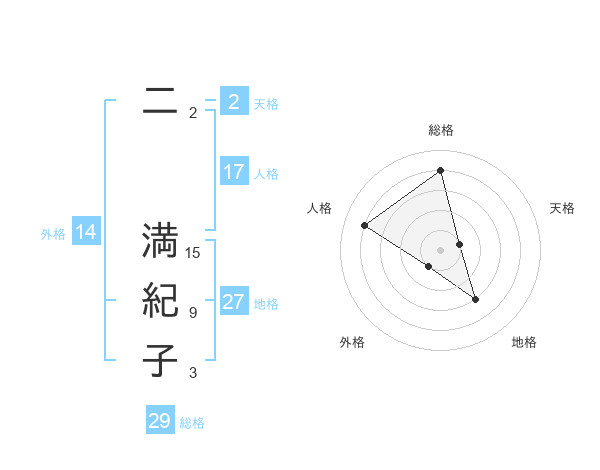 二 満紀子さんの総格は29画の4点!
