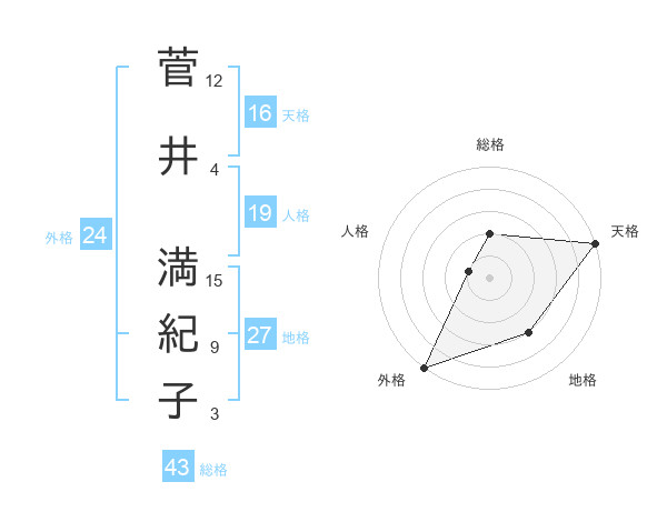 菅井 満紀子さんを姓名の画数から五運を鑑定