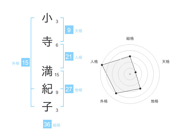 小寺 満紀子さんを姓名の画数から五運を鑑定