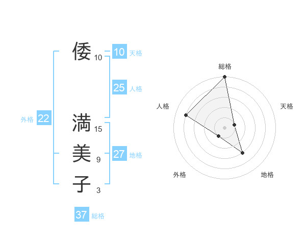 倭 満美子さんの総格は37画の5点!