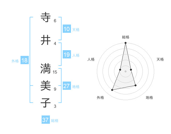 寺井 満美子さんを姓名の画数から五運を鑑定