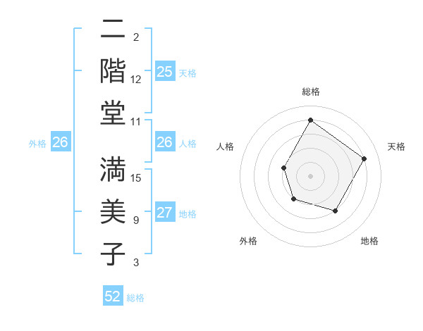 二階堂 満美子さんの総格は52画の4点!
