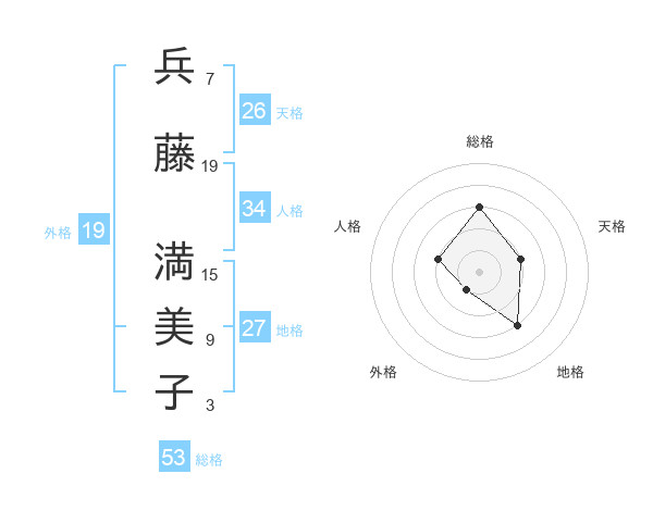 兵藤 満美子さんを姓名の画数から五運を鑑定