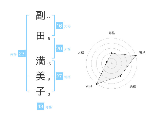 副田 満美子さんの総格は43画の2点!