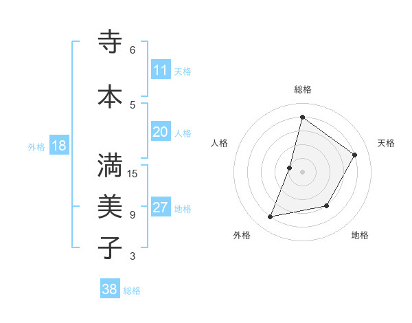 寺本 満美子さんの総格は38画の4点!