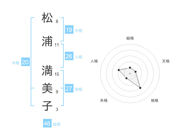 松浦 満美子さんの天格は19画の1点!