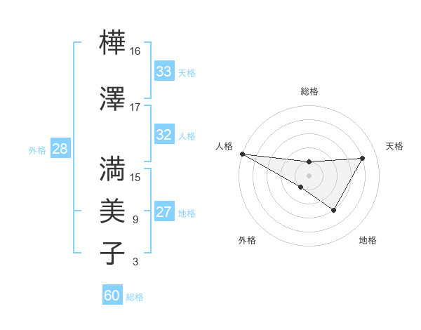 樺澤 満美子さんの天格は33画の4点!