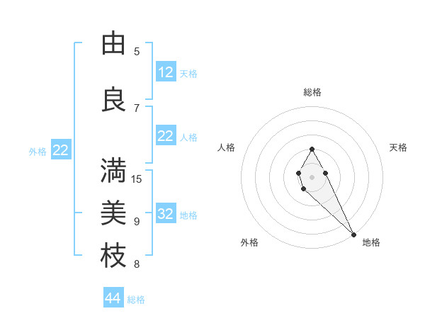 由良 満美枝さんの総格は44画の2点!