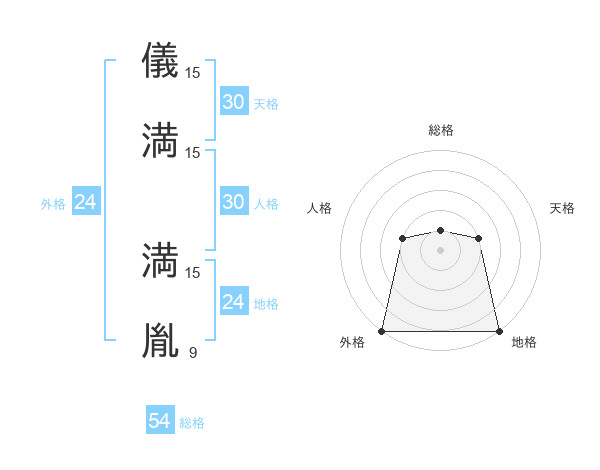儀満 満胤さんの総格は54画の1点!