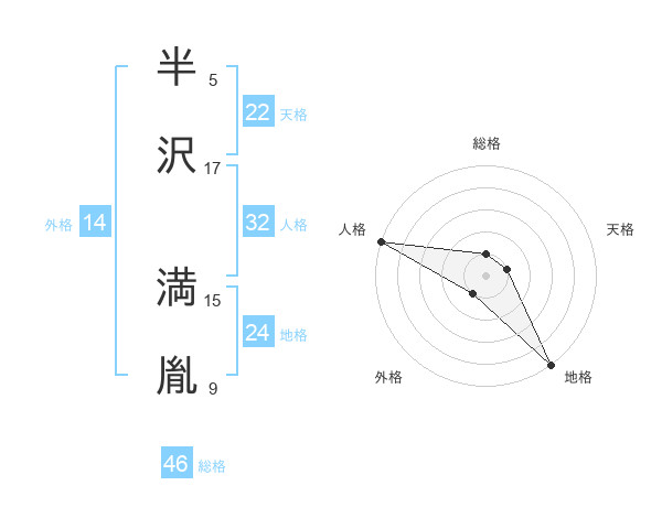 半沢 満胤さんの天格は22画の1点!