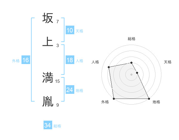 坂上 満胤さんの総格は34画の2点!
