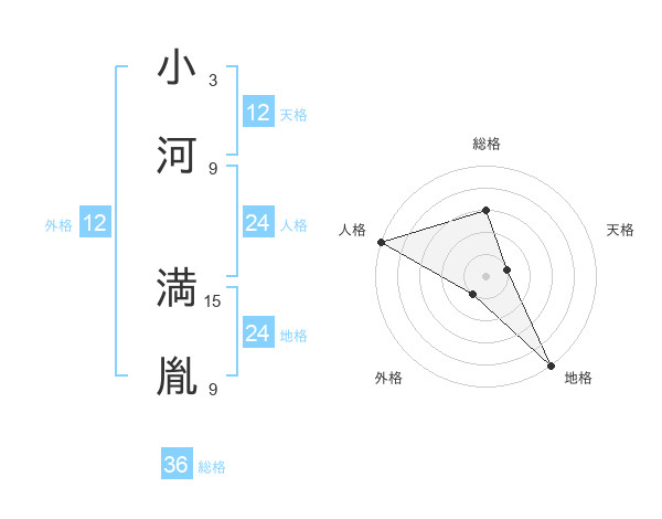 小河 満胤さんの総格は36画の3点!