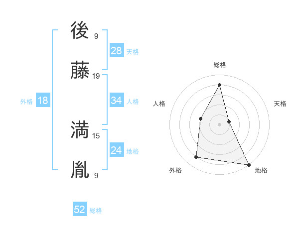 後藤 満胤さんを姓名の画数から五運を鑑定