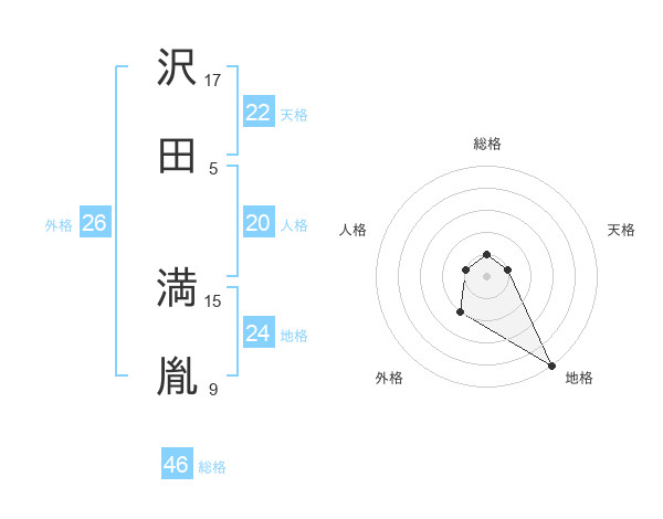 沢田 満胤さんを姓名の画数から五運を鑑定