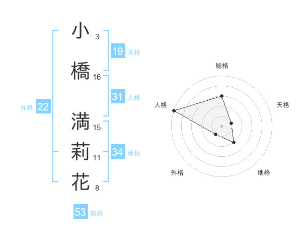 小橋 満莉花さんを姓名の画数から五運を鑑定