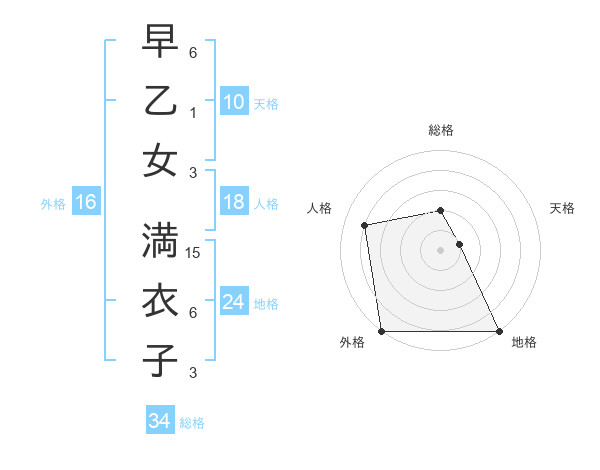 早乙女 満衣子さんを姓名の画数から五運を鑑定