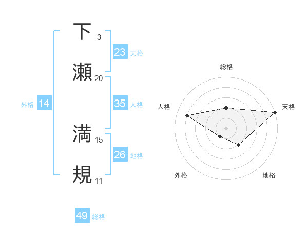 下瀬 満規さんの天格は23画の5点!