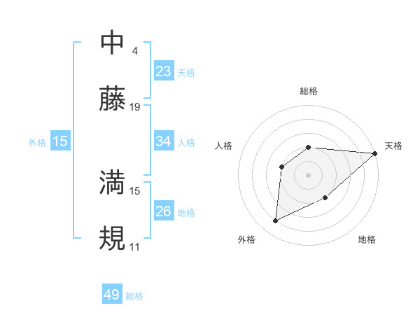 中藤 満規さんの総格は49画の2点!