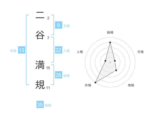 二谷 満規さんの総格は35画の4点!