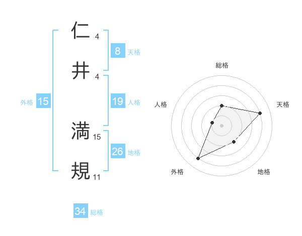 仁井 満規さんの天格は8画の4点!