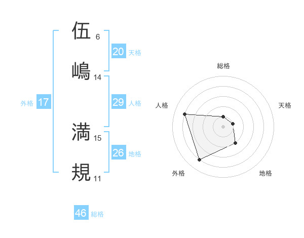 伍嶋 満規さんを姓名の画数から五運を鑑定