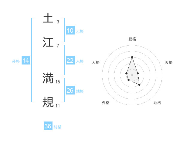 土江 満規さんを姓名の画数から五運を鑑定