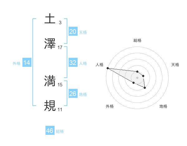 土澤 満規さんを姓名の画数から五運を鑑定
