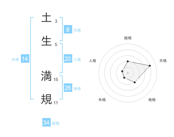 土生 満規さんを姓名の画数から五運を鑑定