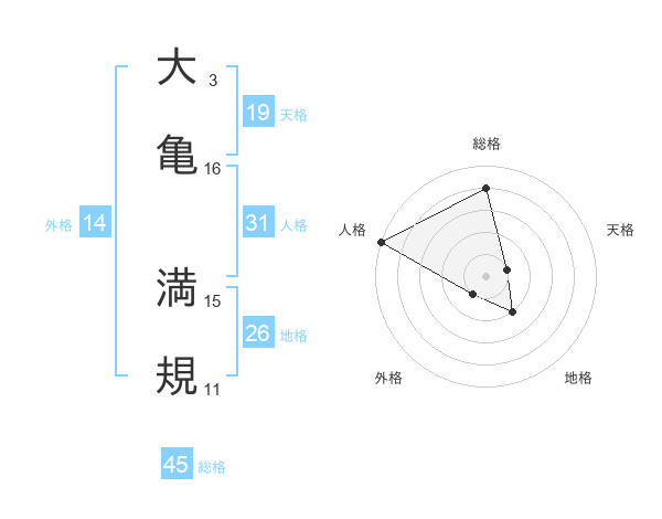 大亀 満規さんの総格は45画の4点!