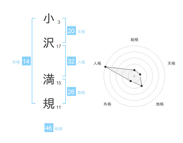 小沢 満規さんの総格は46画の1点!