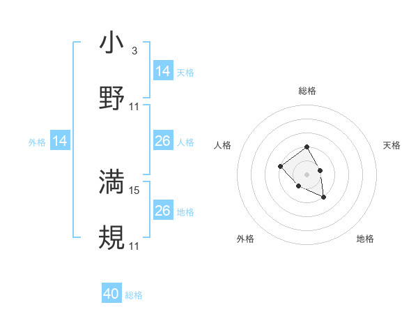 小野 満規さんの総格は40画の2点!